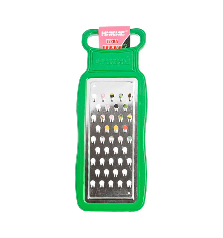 Терка применяется для шинковки различных продуктов: овощей, фруктов, сыра и др. Рабочая часть терки изготовлена из нержавеющей стали, корпус терки – из пластмассы. После применения терку рекомендуется промыть мягкой щеткой с использованием жидких моющих средств.