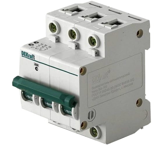 Автоматический выключатель серии ВА-101 DEKraft, 3P, номинальный ток 32 А, характеристика С, отключающая способность 4,5 кА. Новый механизм расцепления мгновенно разрывает цепь при возникновении аварии. 5 монолитных заклепок повышают прочность корпуса аппарата. Сплошная лицевая панель обеспечивает безопасность эксплуатации аппарата. Боковые каналы охлаждения повышают стабильность работы при высоких температурах окружающей среды. Полностью автоматизированный контроль качества производства.