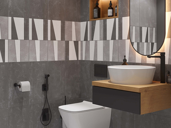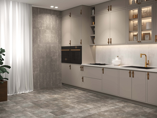 Оформление коллекции керамической плитки Бордо представлено в стилях ретро, минимал шик, лофт, индастриал. Поверхность материала имитирует фактуру потертого бетона с мелкими песчинками, обеспечивая выразительный визуальный эффект. Элементы коллекции прекрасно сочетаются между собой, позволяя создавать гармоничные интерьерные решения.
