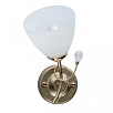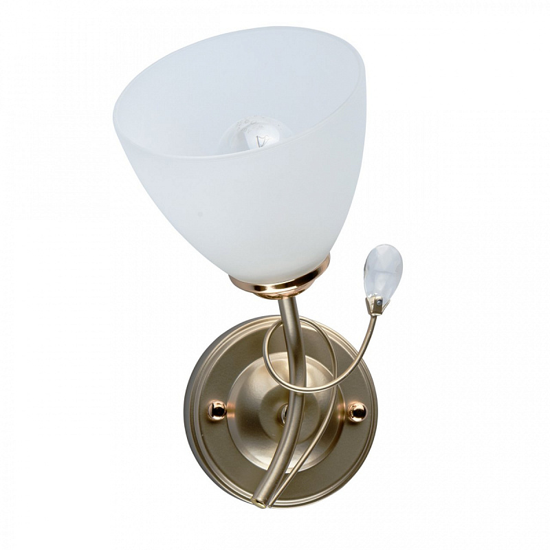 Основание светильника выполнено из металла и окрашено в цвет перламутрового золота. Отдельные элементы основания гальванизированы в цвет золота. Светильник декорирован стеклянными матовыми плафонами.