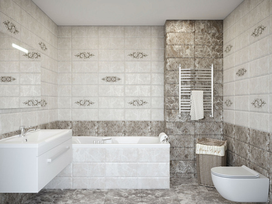 Серия керамической плитки CLASSICO российского производителя М-Квадрат – это базовый отделочный материал для оформления помещений в романтическом стиле. Представлена в бежевом и коричневом цветах. Плитка отлично сочетается с декорами из этой коллекции и служит красивым фоном для них. Используется в оформлении ванных комнат, кухонь.