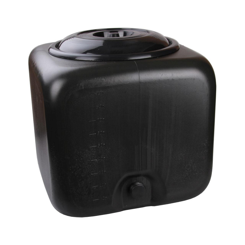 Бак выполнен из качественных полимеров, устойчив к солнечным лучам, влаге и перепадам температур. Благодаря большой горловине в него удобно наливать воду, так-же сбоку расположено отверстие для слива. На стенке изделия есть специальная шкала, для определения уровня воды.