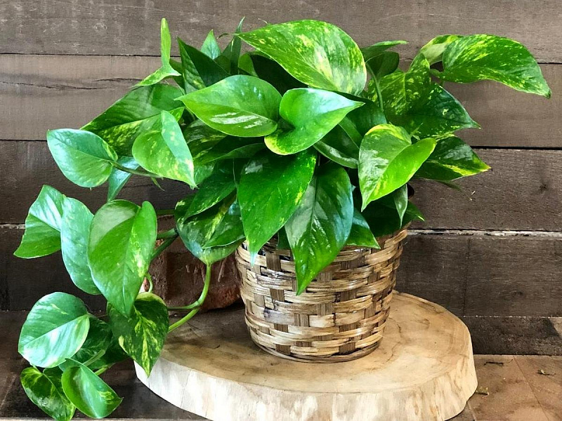 Эпипремнум (Сциндапсус) подвесной — великолепное ампельное растение с пышной зеленью, идеально украсит любое помещение. Нетребователен в уходе, отлично очищает воздух. Предпочитает полутень и умеренный полив.