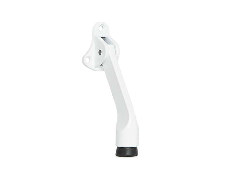 Работает элементарно: открываете дверь на нужный угол, откидываете мыском ножку фиксатора – та упирается в пол и обездвиживает дверь.