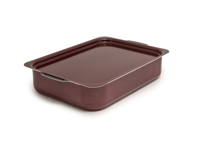 Противень прямоугольный 19*25*5,7см с металической крышкой. Легкий, удобный и красивый противень серии Кружево вместительной прямоугольной формы с крышкой и удобными ручками идеально подходит для приготовления десертов, запеканок и многослойных вторых блюд в духовке. Европейское антипригарное покрытие надежно защитит продукты от прилипания к стенкам и дну даже с минимальным использованием масла в режиме запекания. Внешнее декоративное покрытие рассчитано на интенсивное использование, легко моется и надолго сохраняет свой яркий цвет. Корпус с крышкой из штампованного алюминия оптимальной толщины 0,9 мм быстро и равномерно нагревается на всю глубину, сохраняя тепло внутри и бережно доводя содержимое до полной готовности. С противнем Кружево бренда Калитва можно легко разнообразить повседневное меню и смело экспериментировать с основными блюдами и десертами из любых продуктов.