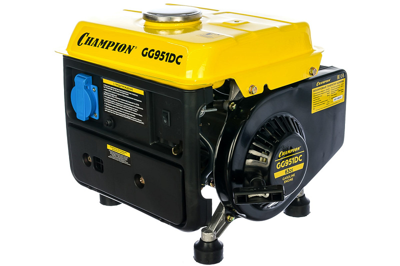 Генератор Champion GG951DC служит в качестве однофазного источника питания. Аппарат оснащен мощным одноцилиндровым двигателем, который обеспечивает надежное и стабильное функционирование в течение всего срока службы. Вместительный топливный бак гарантирует продолжительное время непрерывной работы. Компактные размеры и небольшой вес позволяют использовать устройство во время туристических походов или на рыбалке. Наличие розетки 12 В дает возможность зарядить аккумуляторную батарею. Особенности Champion GG951DC