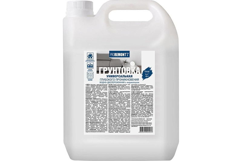 Универсальный грунт Proremontt с индикатором, 4 кг предназначена для подготовки непрочных, осыпающихся и сильно впитывающих поверхностей. Применяется для пропитки бетонных, кирпичных, оштукатуренных и других поверхностей снаружи и внутри помещений.