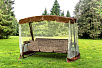 Габаритные размеры изделия (длина х ширина х высота), мм: 2365х1380х1665; размеры сиденья: 1782х532, размеры спинки: 1782х532; размеры тента: 2100х1455. Максимальная нагрузка, кг: 280. Каркас: труба стальная ?51х1,4 мм; полимерное покрытие; полка - 2 шт.