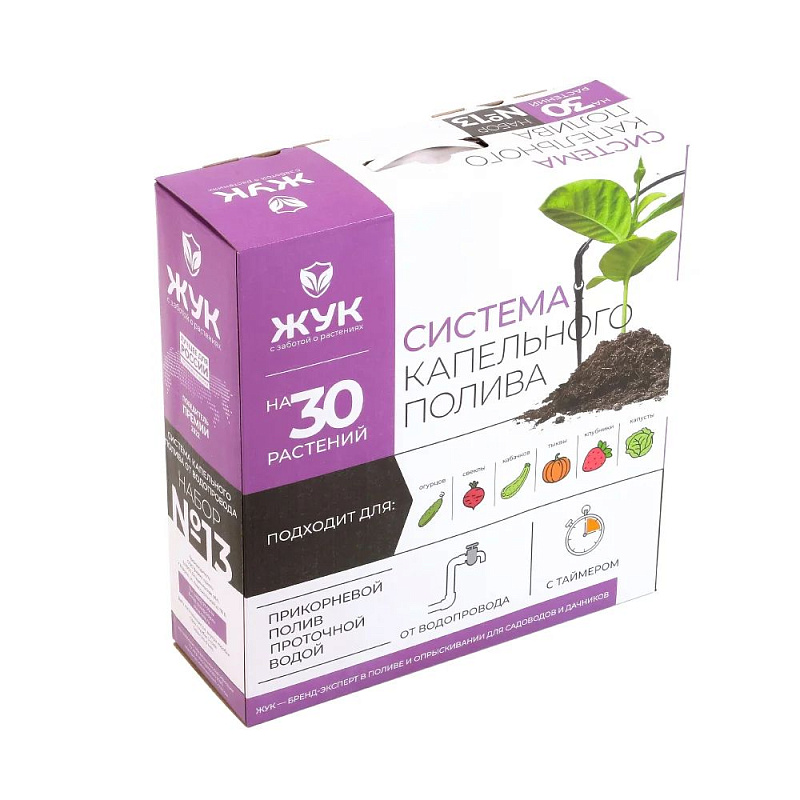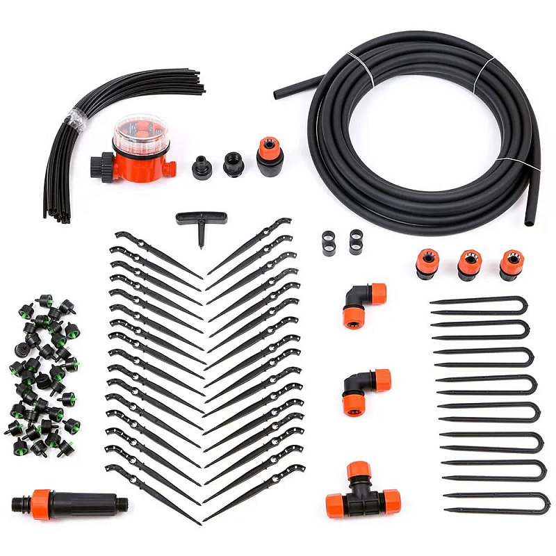 набор содержит полный комплект компонентов для обустройства системы полива;