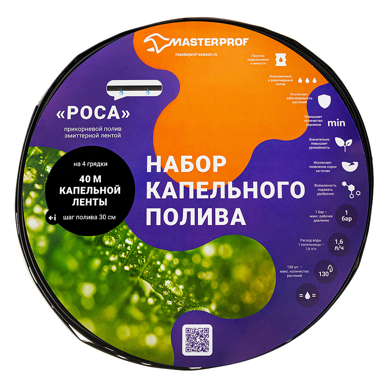 Набор капельного полива «Роса» – качественное и разумное решение проблемы полива грядок и огорода в целом. Для работы понадобится бочка с водой, установленная на высоту не менее 1.5 метра над землей, что создаст необходимое рабочее давление. Орошение осуществляется посредством эмиттеров – плоских капельниц, распределенных на ленте с шагом в 30 сантиметров. Набор рассчитан на полив участка размером 10x10 метров (ориентировочно 4 грядки).