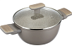 Высококачественный корпус из кованного алюминия обеспечивают сбалансированное распределение температуры для приготовления и сохранения тепла . Ручка изготовлена из АВС пластика и бакелита с покрытием soft touch, она не нагревается и не скользит в руке .