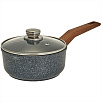 Ковш литой алюминиевый с антипригарным покрытием и стеклянной крышкой. Усиленное многослойное антипригарное покрытие с гранитным вкраплением