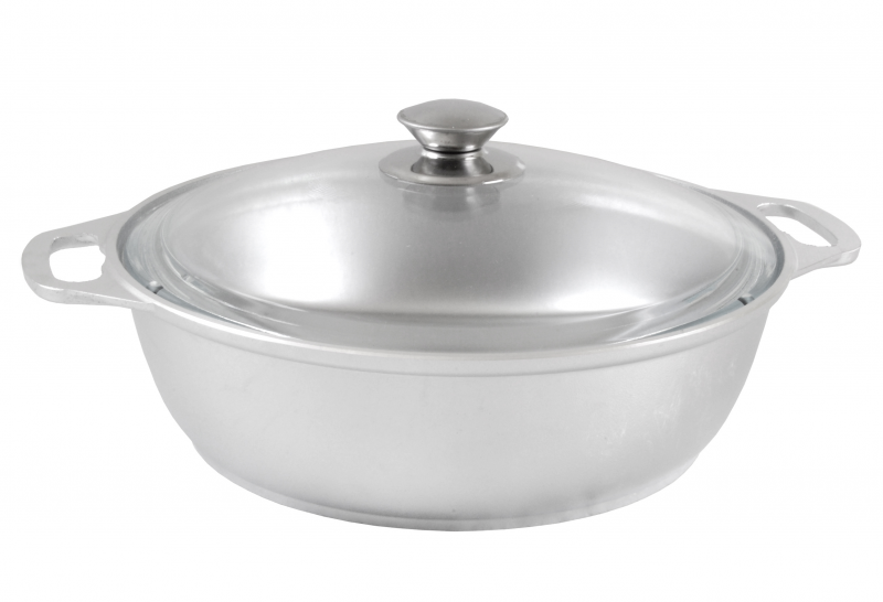 Утолщенные стенки корпуса и дна исключают любой тип деформации. Литая посуда долго сохраняет тепло и равномерно его распределяет. Литая посуда удобна для жарки мяса, запекания индейки или курицы, тушения овощей. Еда в ней «томится», а не жарится, придавая пище особый вкус. Подходит для любых плит. Комплектуется стеклянной крышкой.