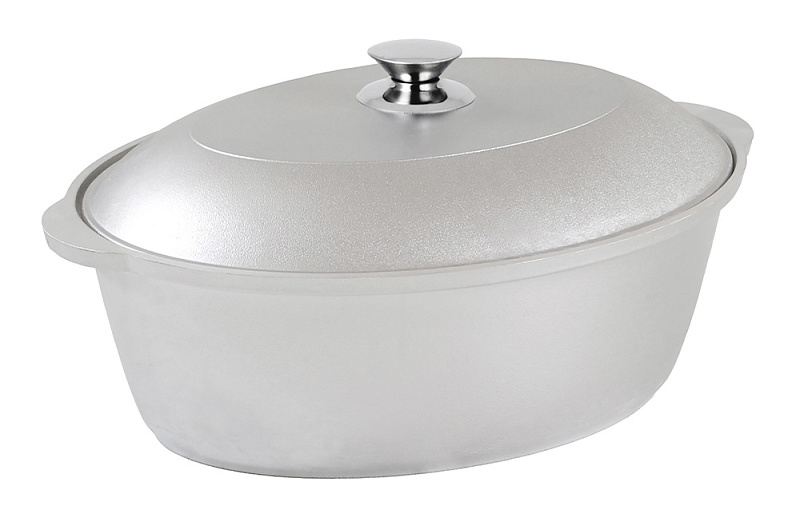 Утятница – это универсальная кастрюля овальной формы с металлической крышкой и ручкой из нержавеющей стали. В такой посуде особенно удобно готовить крупные куски мяса или птицу целиком. Благодаря возможности использования посуды в духовом шкафу, можно тушить блюда с сохранением влаги под закрытой крышкой. Утятницу также можно использовать на плите как обычную кастрюлю для варки и тушения на небольшом и среднем огне – благодаря прекрасным теплораспределительным свойствам алюминия она равномерно прогреваются по всему корпусу.