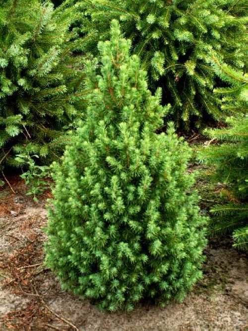 Саженцы Ели канадской Коника (Picea Conica) особенно популярны в ландшафтном дизайне. Взрослое растение может достигать 150—200 сантиметров в высоту. Прирост хвои медленный (до 10 сантиметров в год в длину и до 6 сантиметров в ширину), но эту особенность можно отнести к достоинствам сорта. Крона получается густой и пышной — за ней практически не видно ствола. Главное преимущество ели Коника — ее естественно правильная конусовидная форма, которая не теряется даже без стрижки. Хвоя мягкая, окрашена в яркий зеленый цвет с сизым оттенком, который сохраняется в течение всего года. Сорт подходит для выращивания в умеренном климате и переносит заморозки без ущерба. Его стоит приобрести для одиночной посадки в саду или для создания густой живой изгороди.