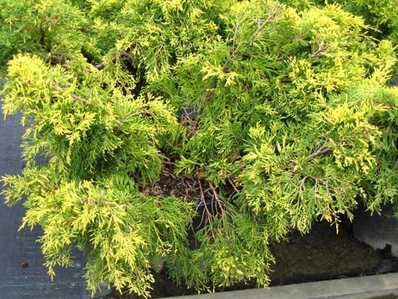 Низкий кустарниковый сорт можжевельника, характеризующийся средней скоростью роста. В возрасте 10 лет достигает 0,5м роста при диаметре 1м. Хвоя имеет форму иголок или чешуй с яркой золотисто-желтой окраской. Очень ценный и эффектный сорт можжевельника с приятным золотистым оттенком хвои.