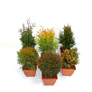 Туя, микс - замедленное в росте дерево высотой около 12-20 метров, имеющее небольшую шаровидную или пирамидальную форму кроны. Молодые деревья покрыты ровной корой красно-бурого цвета, со временем она меняет окрас и становится серо-коричневой. При старении туи появляются узкие продольные полоски. Чешуйчатая хвоя зимой приобретает темно-зеленый или коричневый окрас, не крупная (0,2-0,4см), тесно прижата к ветке, растет на дереве 2-3 года и осыпается с мелкими ветками. Верхняя часть веток темно-зеленая, с глянцевым блеском, нижняя - светло-зеленая с матовым оттенком. Шишки туи западной яйцевидной формы, небольших размеров- 7-12мм.