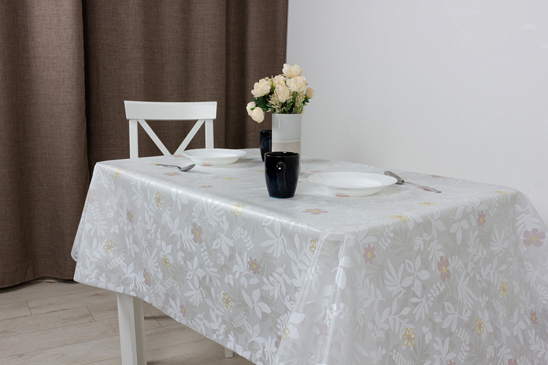 Клеенка из 100% двухслойного ПВХ без основы. 1-й слой с нанесенным печатным рисунком с эффектом переливания и бликов. 2-й слой сетчатая основа.