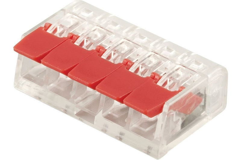 Универсальная компактная клемма STEKKER 5-проводная, LD221-415, предназначена для быстрого и надежного монтажа электропроводки. Она незаменима везде, где необходимо подключить большое количество многожильных и одножильных проводников в минимальном пространстве.