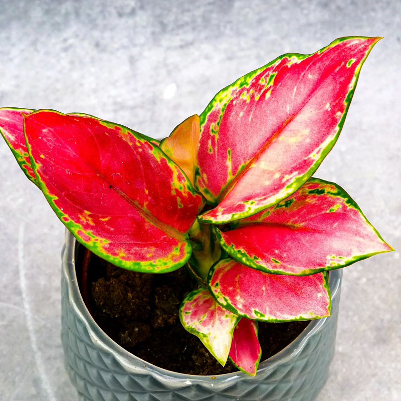Аглаонема Китайская красная (лат. Aglaonema China Red) - удивительное очень красивое декоративно - лиственное растение с яркими насыщенно - розовыми листьями. Вырастить его может даже неопытный цветовод-любитель. Отличительным свойством растения является то, что цветок может расти даже при самом скудном освещении и практически в любой почве. Аглаонема не нуждается в ярком интенсивном освещении, а прямые солнечные лучи ей вообще противопоказаны. Очень чувствительна к сквознякам, располагать вдали от открытых окон, форточек. В период роста (весна – лето) днем температура около +20..+22°С, не допускать повышения выше чем +25°C. В зимнее время желательно снижение температуры до +18°C, хотя в зимнем периоде покоя Аглаонема не нуждается. Поливать следует только мягкой, отстоявшейся водой по мере подсыхания земли на несколько сантиметров. Перелив приведёт к потере красок листьев, а в последствии к корневой гнили, в таком случае растение погибнет. Когда на кончиках листьев образовываются капельки, это сигнал о том, что растение перелито, так оно избавляется от лишней влаги.
