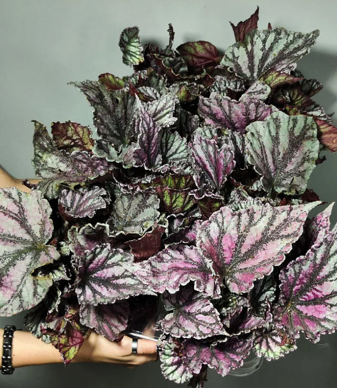 Бегония Рекс имеет роскошные листья разной формы и расцветки.
