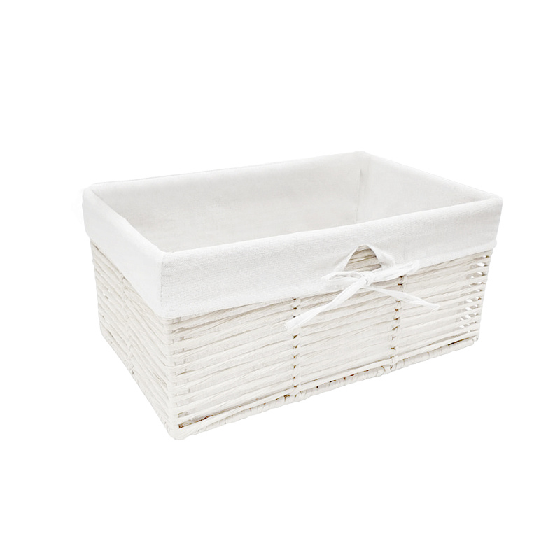 Стеллажная корзина из бумажной ленты в трендовом белом цвете идеально впишется в любой современный интерьер. Создана из природных материалов, поэтому подойдет приверженцам эко-тренда.