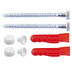 В комплект «Крепеж для унитаза» входит: болт сантехнический 6х80 (2шт), дюбель трехлепестковый 10х50 (2шт), заглушка пластиковая (2шт), вставка пластиковая (2шт).