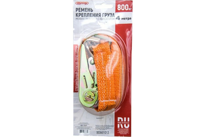 Стяжка груза 4м 0.8т 25мм с храповым механизмом SKYWAY S03601012 упрощает перемещение грузов и делает его более безопасным. Для зацепления использованы прочные металлические крюки.