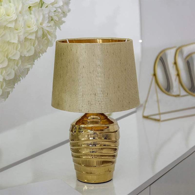 Лампа настольная с абажуром Дукат, хорошо впишется в любой интерьер и украсит его. Размер светильника: диаметр 20см, высота 32см. Патрон (цоколь) под Е14, миньон. В светильнике можно использовать лампочку накаливания максимальной мощностью не более 40Вт. Светодиодные лампочки без ограничений. Длина провода вместе с вилкой 130см. Материал абажура внутренний слой светотехнический пластик, наружный слой ткань. Материал основания керамика. Настольный светильник отлично подойдет на тумбочку в спальне. Настольный торшер украсит интерьер зала, часто устанавливают, как дежурный свет в коридорах и кухнях. Прикроватная лампа с выключателем на проводе имеет стильный и оригинальный дизайн. Прикроватный светильник помимо источника света является неповторимым предметом декора для дома. Подарить прикроватный светильник - это отличная идея. Абажур крепится прижимным кольцом, накрученным на цоколь для лампочки. Необходимо открутить кольцо, надеть плафон, закрутить кольцо.