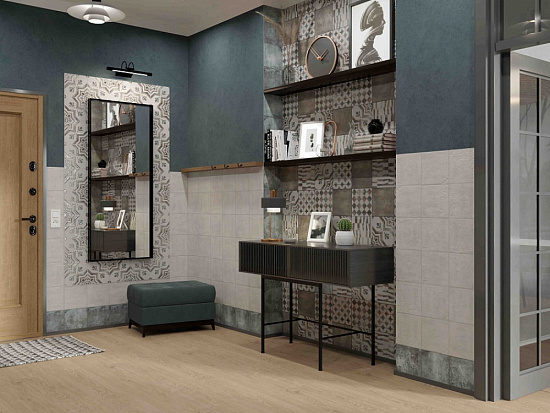 Изюминка коллекции "Либретто" — это вставка с глазурованным линиями узора, нанесёнными на матовом фоне. Вставки могут состыковываться друг с другом, образуя композицию из четырёх плиток или отдельную зону. Декоративные элементы продаются поштучно.