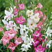 Смесь миниатюрных гладиолусов различных сортов. Идеально подходят для высоких бордюров, для высадки в контейнеры. Хороши в срезке.