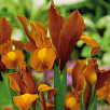 Бронз Перфекшн - высота растения 60 см. Цветы красивой сложной окраски, эффектно контрастируют с зеленью молодых мечевидных листьев. Нижние лепестки золотистые, верхние дымчато-медные с пурупно-лиловым отливом. Красиво смотрится в цветниках и в букетах.