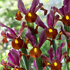 Ред Эмбер - высота растения 60 см. Очаровательный яркий сорт, может быть как фаворитом композиций, так и оттенять более светлые цветы, создавая контрастные и объёмные шедевры. Верхние лепестки лиловые, нижние - насыщенно-бордовые с ярким желтым пятном. На солнце играют всеми оттенками от светло-лиловой до бронзово-красной гаммы. Устойчив к непогоде. Цветет продолжительно.