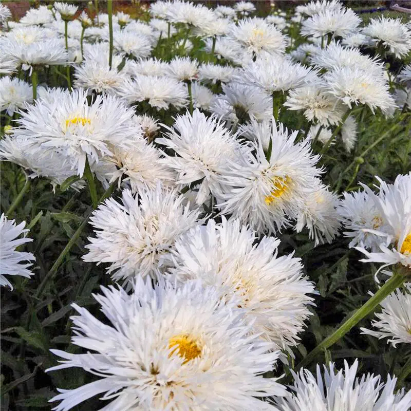 Аглая - высота растения 75 см, цветок белый, махровый с рассеченными лепестками.