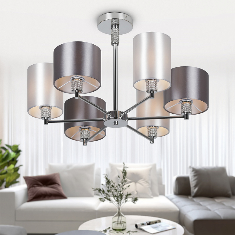 Потолочные люстры Rivoli Ebony (арт. 2081-306) классические люстры с благородными деталями. Абажуры красивого серого и серебристого цветов изготовлены из прочной интерьерной ткани, которая не выцветет со временем. Эти люстры прекрасная покупка, которая продемонстрирует ваш замечательный вкус и будет радовать долгие годы. Хромированная арматура потолочной люстры Ebony от итальянского бренда Rivoli декорирована мелкими камнями кристальной огранки. Идеально подойдет также и на натяжной потолок.