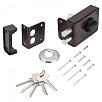 Замок накладной цилиндровый с вертушкой. Предназначен для установки на деревянные двери. Засов из двух цилиндрических ригелей диаметром 14 мм, с максимальным вылетом 25 мм.