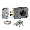 Замок накладной ЗН 1-3 предназначен для деревянных и металлических дверей. Корпус замка выполнен из цинкового сплава, ригели из стали. Имеется блокировка открывания двери ключом снаружи. Изнутри замок запирается ручкой. 2 класс секрета. Количество секретных комбинаций: 15 000. Два ригеля диаметром 14 мм.
