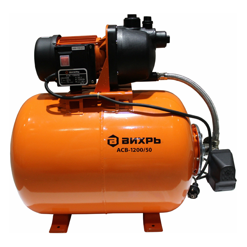 Насосная станция Вихрь АСВ - 1200/50 оснащена асинхронным двигателем мощностью 1200 Вт, рассчитанным на длительный срок службы. Используется для подачи чистой воды в систему водоснабжения частных домов. Станция работает автоматически, благодаря наличию датчика давления. Предусмотрен барометр для удобного контроля уровня давления. Вместительный бак, объемом 50 литров, уменьшает нагрузку на двигатель и сглаживает гидроудары в системе.