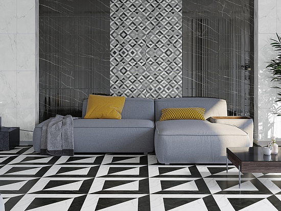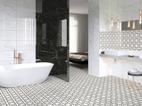 Коллекция Орлеан Axima выглядит солидно, благородно и дорого. Фоновая плитка — это сочетание непревзойдённого мрамора Калакатта и чёрного мрамора. Классическая комбинация чёрного и белого цвета воплощает изысканный и утончённый стиль. Тёмная и светлая плитка, выполненная на рельефном штампе, светлая плитка, дополненная мозаичными геометрическими квадратами — также являются фоновой плиткой и продаются квадратными метрами. Тонкий современный шарм придаёт коллекции набор декоративных элементов. Керамическая плитка Орлеан Аксима производится на итальянских линиях Sacmi.