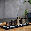 Аромат шалфея с древесными нотками — это неповторимая комбинация свежести и тепла. Верхние ноты открываются яркими и мятными аккордами. Это создаёт ощущение свежести и энергии, наполняет пространство легкостью. Постепенно, аромат раскрывается травяными нотками, которые добавляют ему глубины и тепла. Такой аромат способен создать атмосферу спокойствия и гармонии. Набор состоит из аромадиффузора объемом 100 мл, палочек из ротанга в количестве 6 штук, ароматической свечи в стеклянном подсвечнике, подсвечников в количестве 2 штук, чайных свечей-таблеток в количестве 2 штук и деревянного подноса с декоративными камнями.