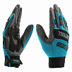 Универсальные комбинированные перчатки с защитными накладками. Служат для защиты рук от механических повреждений и образования мозолей. Накладки из полимерного материала SBR на тыльной стороне пальцев дополнительно предохраняют руки от механических повреждений, ударных воздействий, обеспечивают защиту при зажиме. Формованные накладки на ладонях препятствуют появлению синяков и ссадин. Изделия могут использоваться при проведении строительных и ремонтных работ, а также во время занятий спортом или активного отдыха.