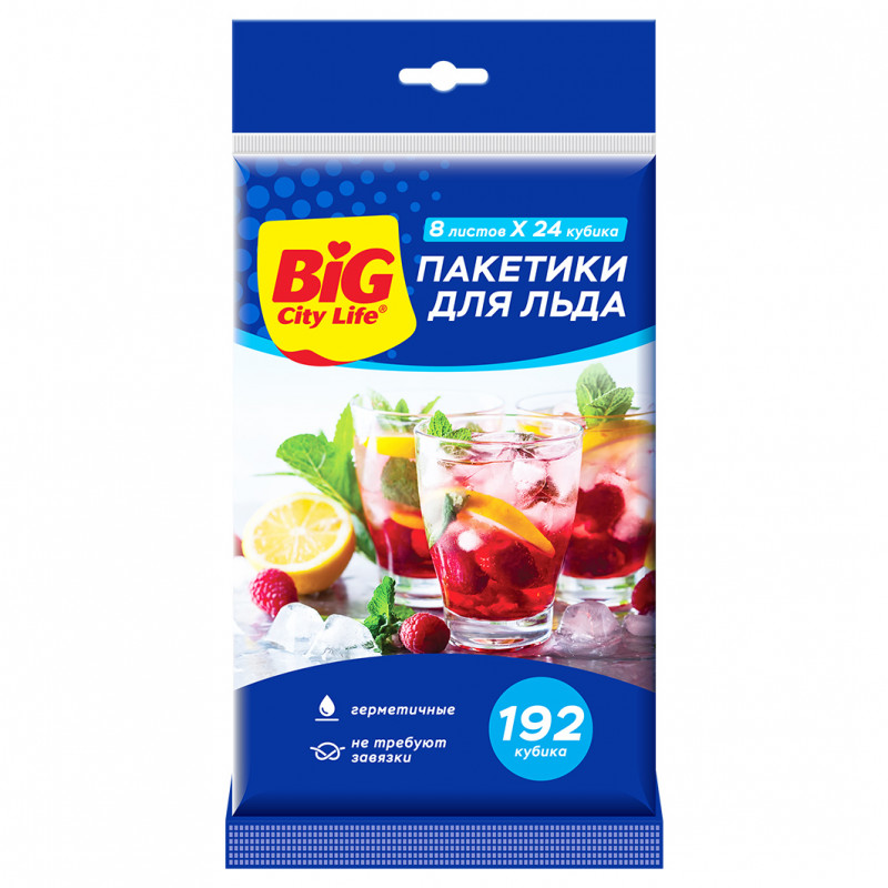 Пакетики для льда Big City Life с самозакрывающимся клапаном 192 кубика предназначены для быстрого и удобного приготовления пищевого льда. Удобны в использовании — они легко наполняются и не нуждаются в завязках благодаря уникальному клапану. Замороженные шарики легко извлекаются — для этого достаточно нажать на шарик льда в пакете. Способ применения: налить воду в специальное отверстие; резким движением перевернуть пакет вверх дном; положить в морозильную камеру до полного замораживания; аккуратно выдавить нужное количество ледяных кубиков.