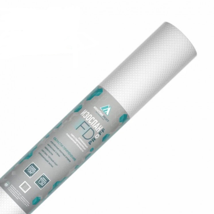 Изоспан FD — материал, выполненный из полипропиленового тканого полотна и металлизированной полипропиленовой пленки. Свойства материала Изоспан FD позволяют применять его в качестве: пароизоляции с эффектом энергосбережения в конструкциях утепленных скатных кровель, каркасных стен и перекрытий для защиты утеплителя и внутренних элементов конструкций от проникновения паров воды изнутри помещения, а также для предотвращения проникновения частиц волокнистого утеплителя во внутреннее пространство здания; подложки в системе «Теплый пол» с целью направленного отражения тепла внутрь помещения; экрана, отражающего тепловой поток от нагревательной системы. Высокая за счет тканой структуры прочность материала позволяет применять его в условиях повышенных нагрузок при монтаже (погодные условия, сложность конструкции, продолжительность монтажа) и эксплуатации. При соблюдении всех требований к монтажу применение отражающей паро-гидроизоляции Изоспан FD позволяет сохранить теплоизоляционные свойства утеплителя и продли