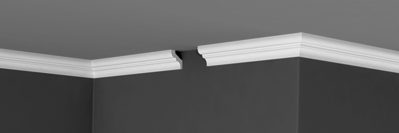 Плинтус потолочный Де-Багет используется для решения дизайнерских и функциональных задач: визуальное расширение пространства, зонирование комнаты, а также позволяет скрыть дефекты отделки.