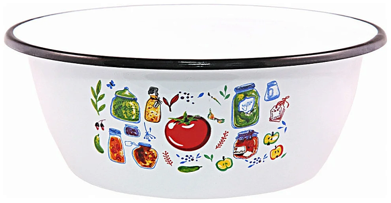 Миска изготовлена из стали, покрытой эмалью. Такое покрытие защищает сталь от коррозии, придает посуде гладкую стекловидную поверхность и надежно защищает от кислот и щелочей. Миска подойдет для перемешивания продуктов, приготовления салатов и маринования мяса. Кроме того, изделие отлично подходит для приготовления пищи на природе. За счет ее компактного размера и формы миску удобно хранить в шкафу с другими кухонными принадлежностями.