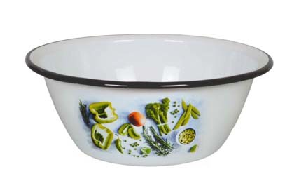 Миска изготовлена из стали, покрытой эмалью. Такое покрытие защищает сталь от коррозии, придает посуде гладкую стекловидную поверхность и надежно защищает от кислот и щелочей. Миска подойдет для перемешивания продуктов, приготовления салатов и маринования мяса. Кроме того, изделие отлично подходит для приготовления пищи на природе. За счет ее компактного размера и формы миску удобно хранить в шкафу с другими кухонными принадлежностями.