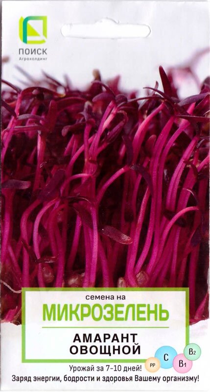 Микрозелень амаранта является очень полезным продуктом, обладая горьковато-ореховым вкусом, послужит отличным дополнением любого блюда, придаст нежный вкус мясу, рыбе, закускам, овощам, смузи и витаминизированным коктейлям. В проростках содержатся белки, аминокислоты, витамины В, Е, С, D, полиненасыщенные жирные кислоты, минеральные компоненты. Ежедневное употребление ростков амаранта даже в небольших количествах способствует оздоровлению и омоложению организма.
