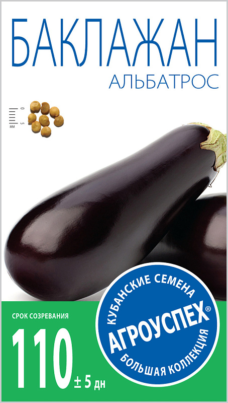 Cреднеспелый популярный сорт. Период от всходов до уборки урожая 115-130 дней. Растение компактное, высотой 40-60 см. Плоды укороченно-грушевидной формы, длиной 9-14 см, массой 300-450 г, с плотной белой мякотью без горечи. Окраска в технической спелости сине-фиолетовая, в биологической - буро-коричневая. Для открытого грунта и пленочных укрытий. Лежкость и транспортабельность плодов отличные.