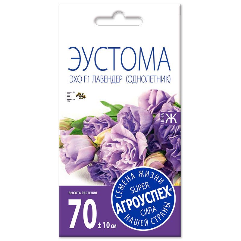 "Эустома «Эхо Лавендер» — однолетнее растение из серии «Эхо» с крупными махровыми цветками раннего цветения. Высота растения достигает 80 см, а диаметр цветка — 6–7 см. Цветы имеют полуоткрытые лавандовые лепестки, напоминающие бутоны розы.