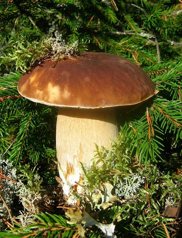 "Царь грибов". Несомненно, самый вкусный и ароматный во всем мире. У белого гриба большая мясистая шляпка и толстая белая ножка. Его мякоть на изломе не темнеет и после сушки сохраняет белый цвет. Растет с мая до октября в лесах всех типов.